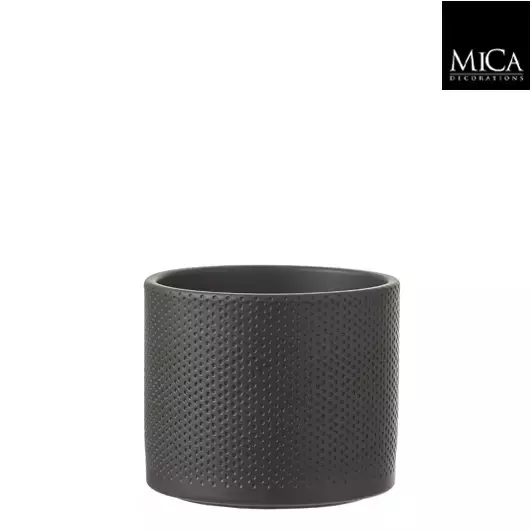 Mica Decorations era ronde pot donkergrijs relief maat in cm: 14,5 x 17,5