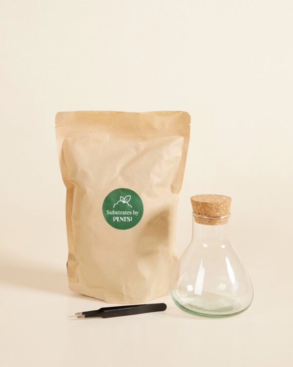 Wil jij graag aan de slag met weefselkweek? In deze set zitten alle benodigheden die jij nodig hebt om je mini plantje te laten groeien tot mooie grote plant! Deze set bevat namelijk een een mini terrarium, stekgrond en een klein pincet. Laten we beginnen met Emily, zij is een mini terrarium en zal ervoor zorgen dat jouw plantje zich op haar gemak voelt in haar nieuwe leefomgeving. Ook zal ze ervoor zorgen dat je plantje op het gebied van luchtvochtigheid en temperatuur niks tekort komt. Onze stekgrond zal zorgen voor de juist basis om wortels in te ontwikkelen. Deze grond is al een mix en bevat voldoende voedingsstoffen, gelijk helemaal klaar voor gebruik!Last but not least onze Tiny Tweezer zij zal helpen met het inrichten en eventuele veranderingen maken in de terrarium. Ze is namelijk speciaal gemaakt om in een terrarium naar binnen te reiken. Buiten dat is zijn ze ook super handig om te gebruiken om jouw mini plantje uit zijn kweek buisje te halen. Het enige wat nog mist is een vertederend weefselkweek plantje plus heel veel liefde en zorg van jou!